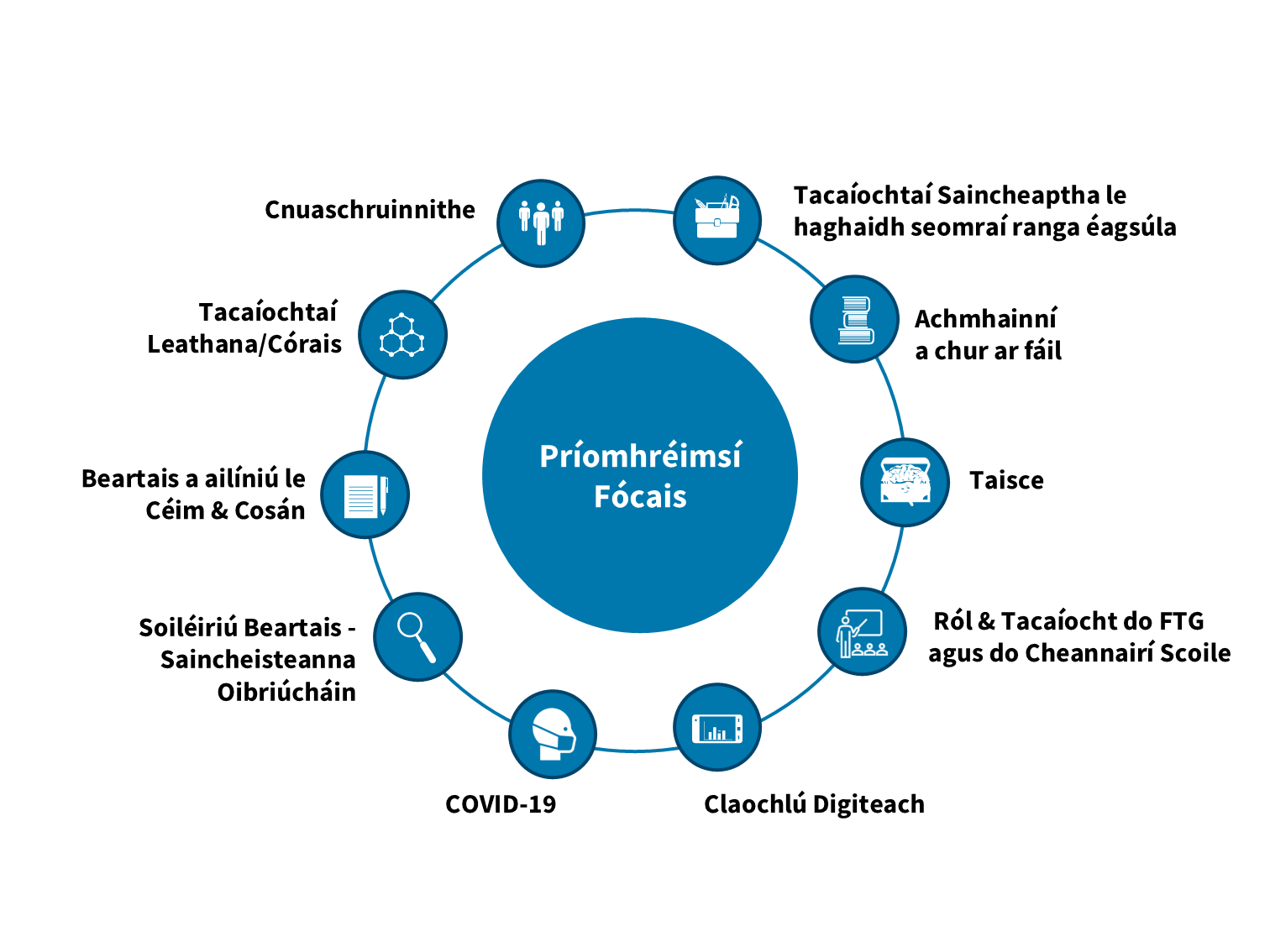 | Athbhreithniú ar Bheartas Droichead Tá an Chomhairle freagrach as gcaighdeáin a bhunú chun treoir a thabhairt agus tacú le próisis ionduchtaithe atá riachtanach ar bhonn reachtúil agus foghlaim ar feadh an tsaoil a chur chun cinn do mhúinteoirí cláraithe (Droichead). Cruthaíonn sé seo tagarmharcanna córasacha a thacaíonn leis na céimeanna tosaigh de ghairm bheatha an mhúinteora agus spreagann sé foghlaim ghairmiúil leanúnach ar feadh a ngairme. Chuir an Chomhairle Mhúinteoireachta tús le hathbhreithniú ar Bheartas Droichead in 2023, agus é mar aidhm acu an tacaíocht is fearr a chinntiú do mhúinteoirí nuacháilithe (MNCanna) agus na torthaí is fearr is féidir a bhaint amach dá gcuid daltaí. Cuireadh an t-athbhreithniú i gcrích i mí an Mhárta 2025 tar éis taighde agus comhairliúchán cuimsitheach a dhéanamh chun na réimsí a leagtar amach sa léaráid thíos a chlúdach. Fanfaidh an beartas reatha Droichead i bhfeidhm go dtí Meán Fómhair 2026. |
