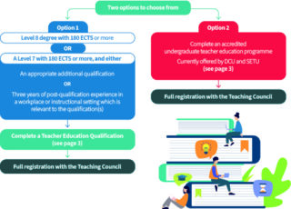 The second option is to complete an undergraduate teacher education qualification in Further Education, which is accredited by the Teaching Council. These degrees are currently offered by DCU and SETU.