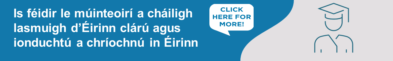 | A Chara, I gcomhthéacs staid na sláinte poiblí agus mar aitheantas ar a dhúshlánaí is atá sé do go leor scoileanna múinteoirí ionaid a fháil ag an leibhéal bunscoile agus iar-bhunscoile, thug an Chomhairle Mhúinteoireachta leasú isteach le déanaí ar Rialacháin (Clárúchán) na Comhairle Múinteoireachta. Is í an tAire Oideachais Norma Foley TD, a shínigh an leasú seo in éineacht le Cathaoirleach na Comhairle Múinteoireachta, Michelle Keane, agus liom féin i mo ról mar Stiúrthóir Gníomhach na Comhairle Múinteoireachta. Foráiltear leis an leasú seo, faoi cheangal ama, gur féidir le múinteoirí bunscoile agus iar-bhunscoile a cháiligh lasmuigh d'Éirinn cur isteach ar chlárúchán agus a n-ionduchtú a chríochnú anseo in Éirinn, ag brath ar na ceanglais incháilitheachta agus cháilíochta a chomhlíonadh. Ón 22 Feabhra 2023 ar aghaidh, glacfaidh an Chomhairle Mhúinteoireachta le hiarratais ar chlárúchán ó mhúinteoirí bunscoile agus iar-bhunscoileanna a cháiligh lasmuigh d'Éirinn ach nach bhfuil an tréimhse ionduchtaithe is gá déanta acu go fóill sa tír inar cháiligh siad. Má tá cara nó duine muinteartha agat nó má tá aithne agat ar dhuine ar bith laistigh de do líonra gairmiúil atá cáilithe nó atá ar tí cáiliú mar mhúinteoir lasmuigh d'Éirinn, molaimid duit an scéala tábhachtach seo a chur ar a súile dóibh. Glacfar le hiarratais ón 22 Feabhra 2023 go dtí an 1 Feabhra 2024. Is féidir teacht ar eolas faoi cheanglais incháilitheachta agus faoi conas cur isteach ar chlárúchán ar www.teachingcouncil.ie Cabhróidh an gníomh seo ón gComhairle Mhúinteoireachta le deacrachtaí maidir le soláthar múinteoirí a mhaolú. Ba mhaith liom buíochas ó chroí a ghabháil leat as tacú linn i gcónaí agus as a dhúthrachtaí agus a oibríonn tú mar mhúinteoir cláraithe i mbun tacú le daltaí agus le scoileanna ar fud na tíre. |
