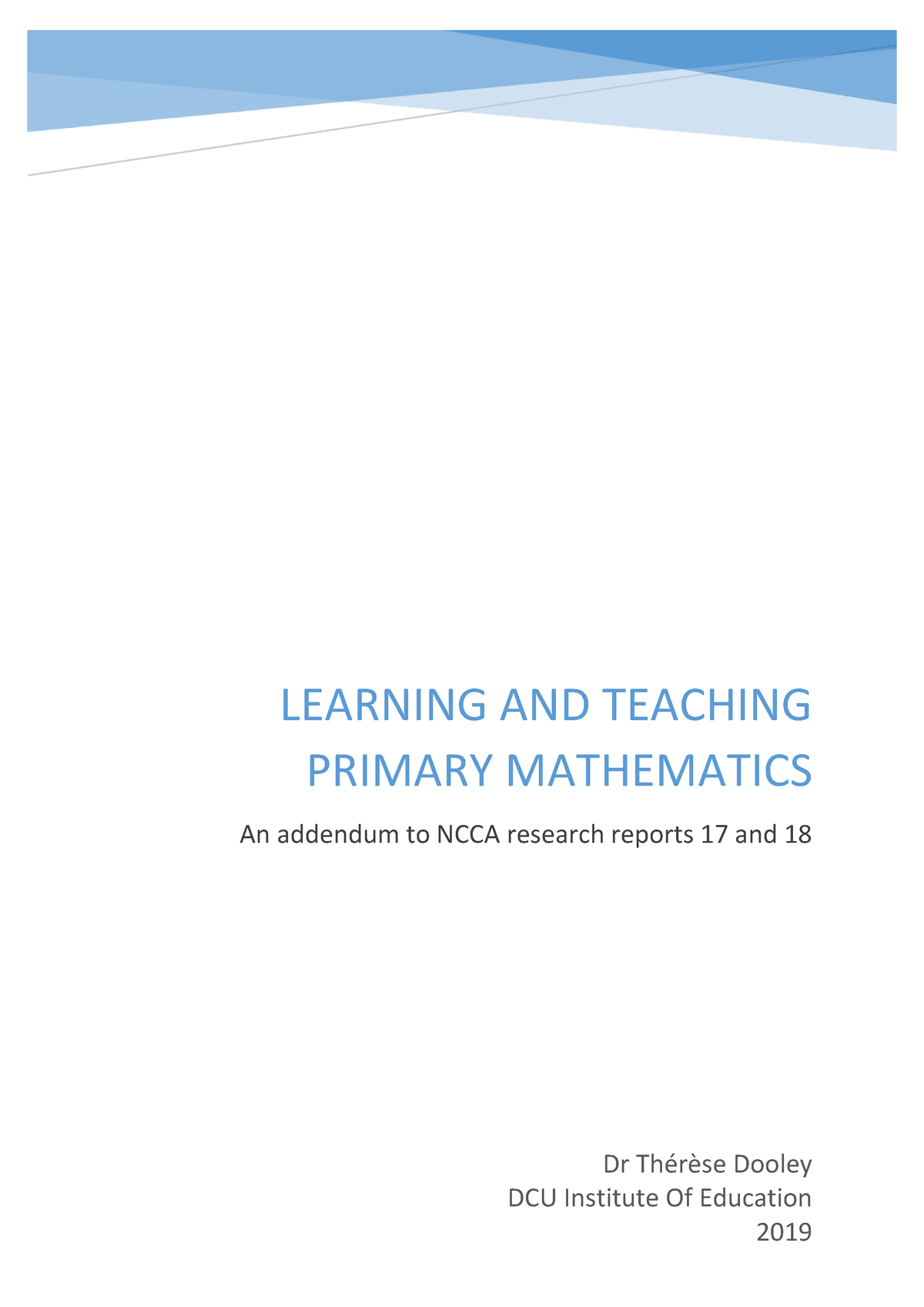 Title: Learning and Teaching Primary Mathematics: An Addendum to NCCA Research Reports 17 and 18